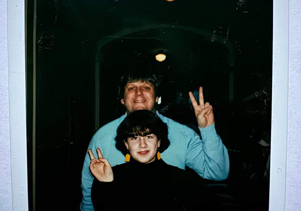 Fifteen year old punker Me was sitting on the floor in the hallway at school talking to a friend.